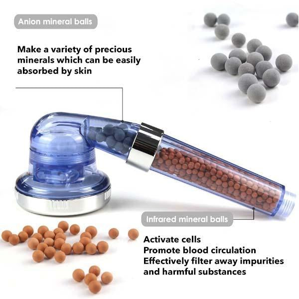 Rejuvenesça sua pele com este chuveiro purificador que possui 2 camadas de pedras minerais bioativas que podem filtrar substâncias prejudiciais enquanto retêm os minerais na água. Com 3 modos de banho, uma experiência saudável e relaxante é garantida! Tenha a experiência de um spa luxuoso em casa com este chuveiro com filtro iônico de alta pressão hoje.