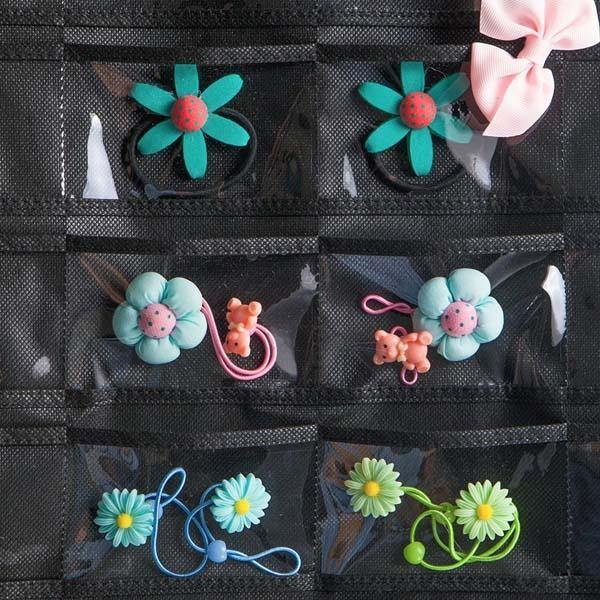Organize suas jóias com este organizador pendurado de jóias! Este organizador de jóias possui 32 bolsos e laços de velcro na parte de trás para armazenar jóias facilmente.