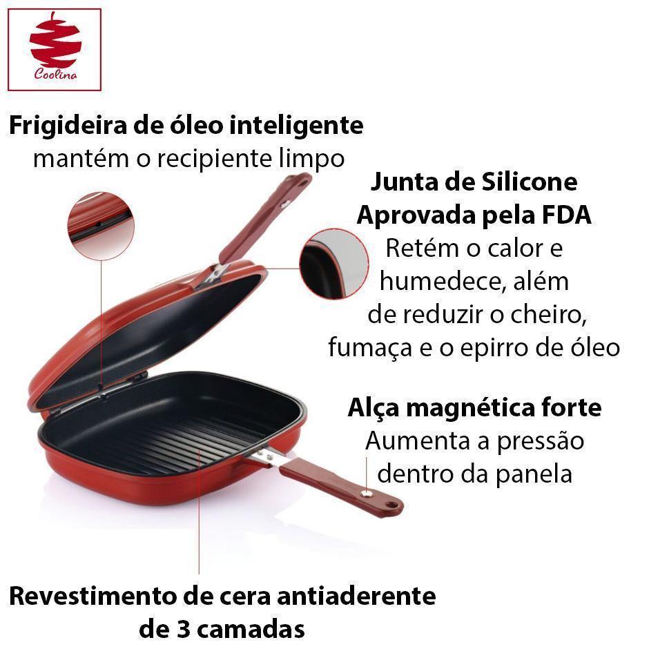 - Panela Dupla é possibilita o preparo de alimentos mais saudáveis, sem necessidade do uso de óleo e que necessitam de pouco líquido para cozinhar.